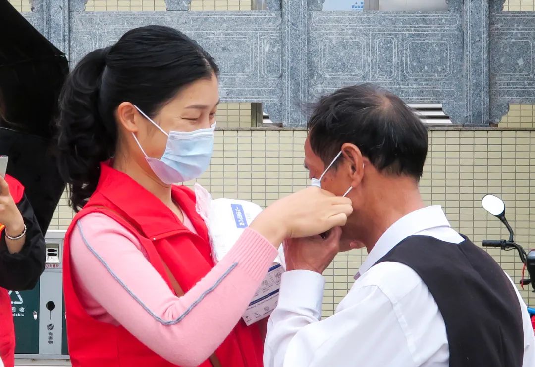 志愿者向未佩戴口罩的市民派發(fā)口罩,向市民宣傳防護(hù)知識(shí),