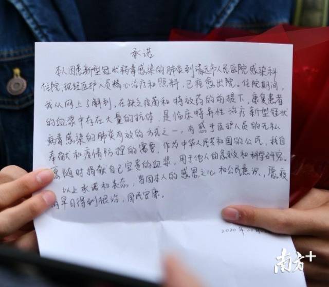 臨出院時,這位小伙子作出了一個驚人的舉動,簽下承諾書,自愿捐出自己的血漿。“社會也需要自己貢獻,覺得可能自己的血漿對其他患者能有幫助。”