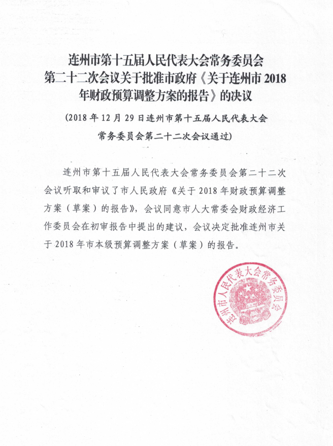 2018年本級(jí)預(yù)算調(diào)整批復(fù)