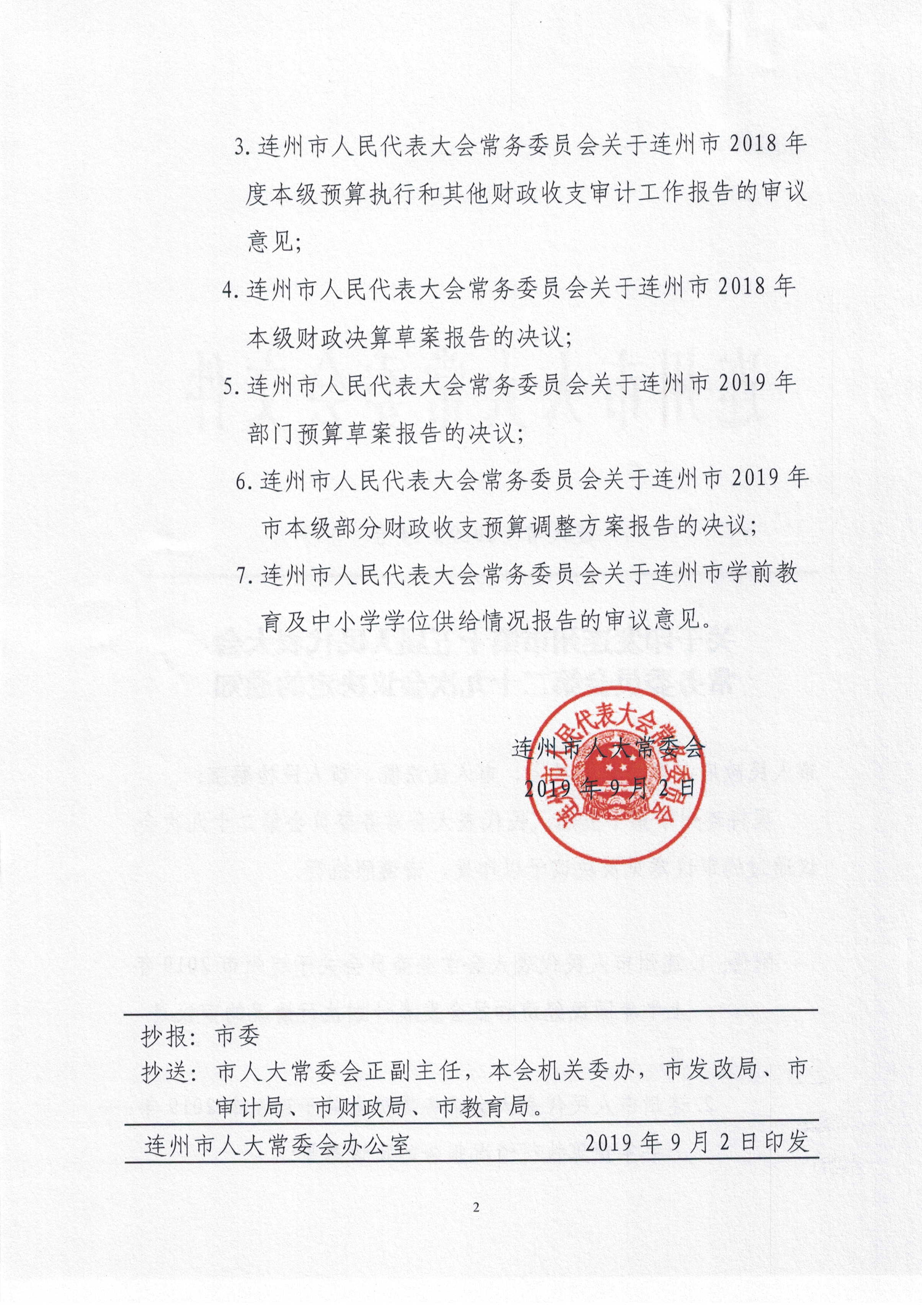 連州市2019年上半年預(yù)算執(zhí)行情況報(bào)告人大決議