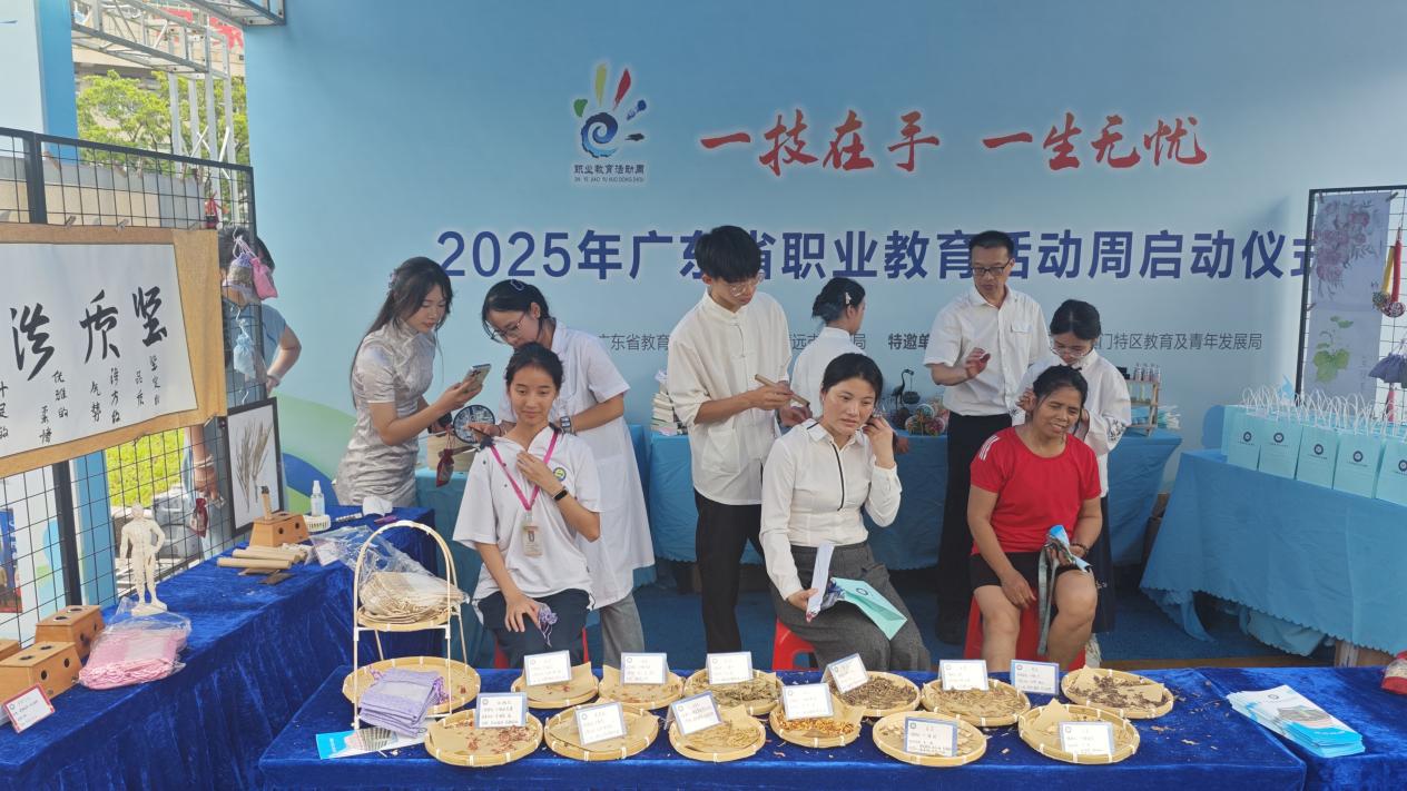 5月16日,學校師生代表前往清遠體育館參加2025年廣東省職業(yè)教育活動成果展示活動。靜態(tài)展區(qū)展示師生們利用專業(yè)知識精心制作的中藥標本、繪畫作品?;訁^(qū)中,香囊制作體驗,讓體驗者從中體會到中醫(yī)藥的獨特魅力;推拿、艾灸的展示,讓體驗者親身感受傳統(tǒng)醫(yī)學的神奇功效;海姆立克急救法展示,將實用技能傳遞給公眾,增強公眾應急救護能力?;顒尤轿徽故玖寺殬I(yè)技能的價值與魅力,生動詮釋了 “一技在手 一生無憂” 的深刻內(nèi)涵。