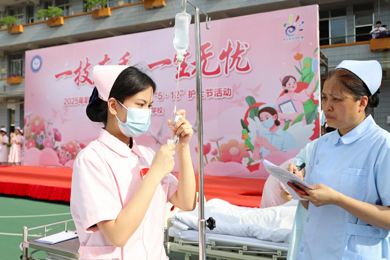 5月9日,開展“5·12”護士節(jié)慶?;顒?,護理專業(yè)學生展示了心肺復蘇和靜脈輸液技能。在心肺復蘇技能展示環(huán)節(jié),通過模擬急救場景,展現(xiàn)扎實的專業(yè)功底。在靜脈輸液技能展示環(huán)節(jié),學生嚴格遵循無菌操作原則,每一個步驟都有條不紊、規(guī)范精準。學生們還進行了風采展示,獲得陣陣掌聲。從精準的靜脈穿刺到規(guī)范的無菌操作,從人文關懷溝通到團隊協(xié)作處置,每一個細節(jié)都彰顯出護理事業(yè)的嚴謹與溫度。