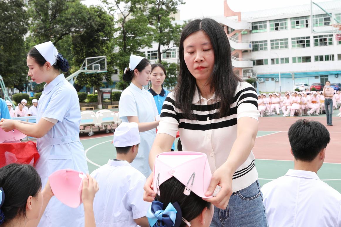 隨后,活動(dòng)進(jìn)行新護(hù)生授、宣誓儀式。護(hù)理及智慧健康養(yǎng)老專(zhuān)業(yè)學(xué)生代表身著護(hù)士服,接受教師為她們戴上象征責(zé)任與奉獻(xiàn)的燕尾帽。錚錚誓言響徹會(huì)場(chǎng),“勿為有損之事,勿取服或故用有害之藥。盡力提高護(hù)理之標(biāo)準(zhǔn),慎守病人家務(wù)及秘密。……”是護(hù)理人傳承精神、接續(xù)使命的重要時(shí)刻,激勵(lì)著學(xué)校全體師生傳承光榮傳統(tǒng)、勇?lián)】凳姑?/span>