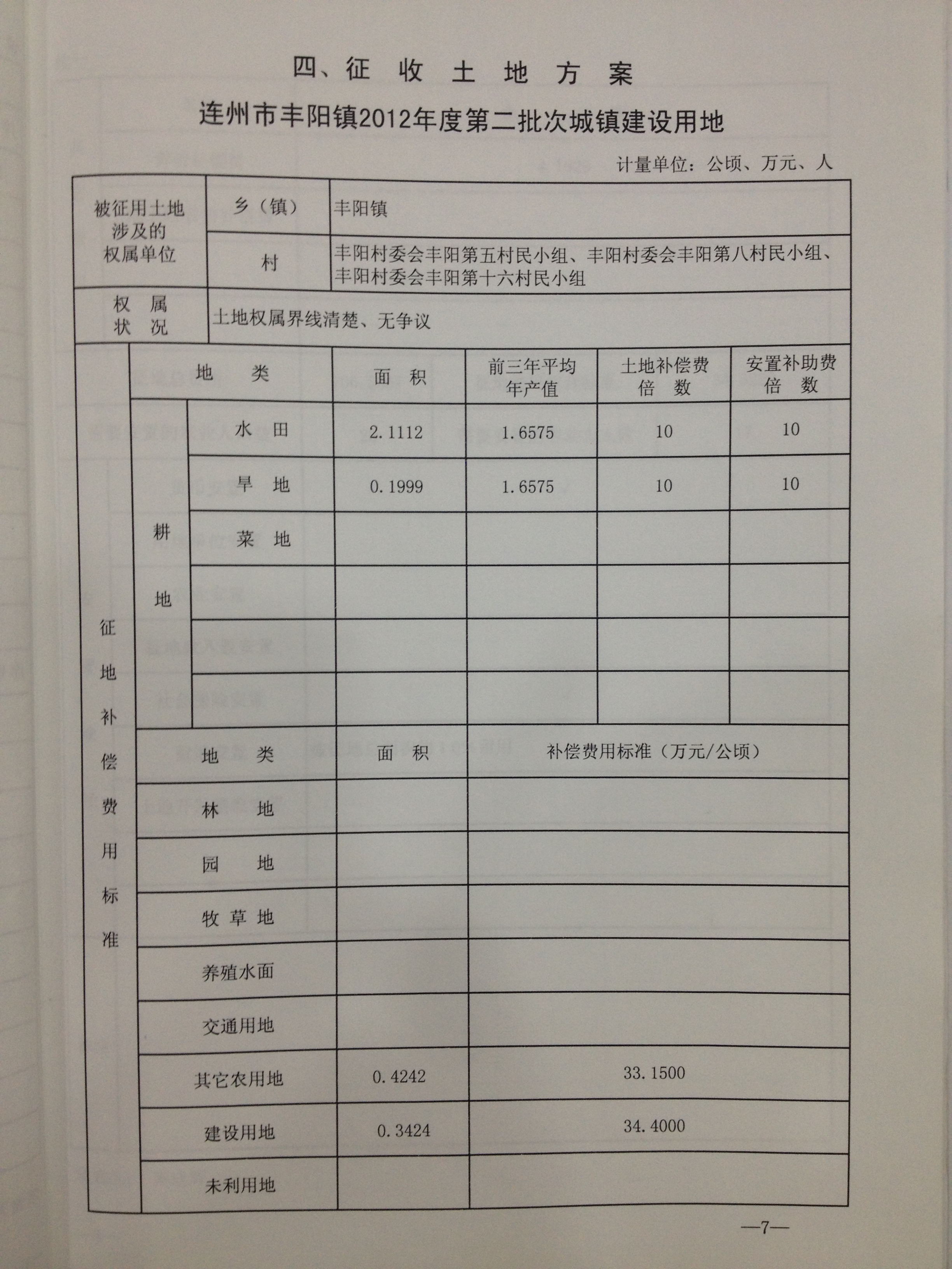 連州市豐陽鎮(zhèn)2012年度第二批次城鎮(zhèn)建設用地征地補償安置方案公告信息