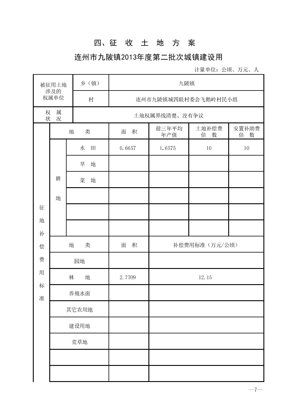 連州市九陂鎮(zhèn)2013年度第二批次城鎮(zhèn)建設用地征地補償安置方案公告信息