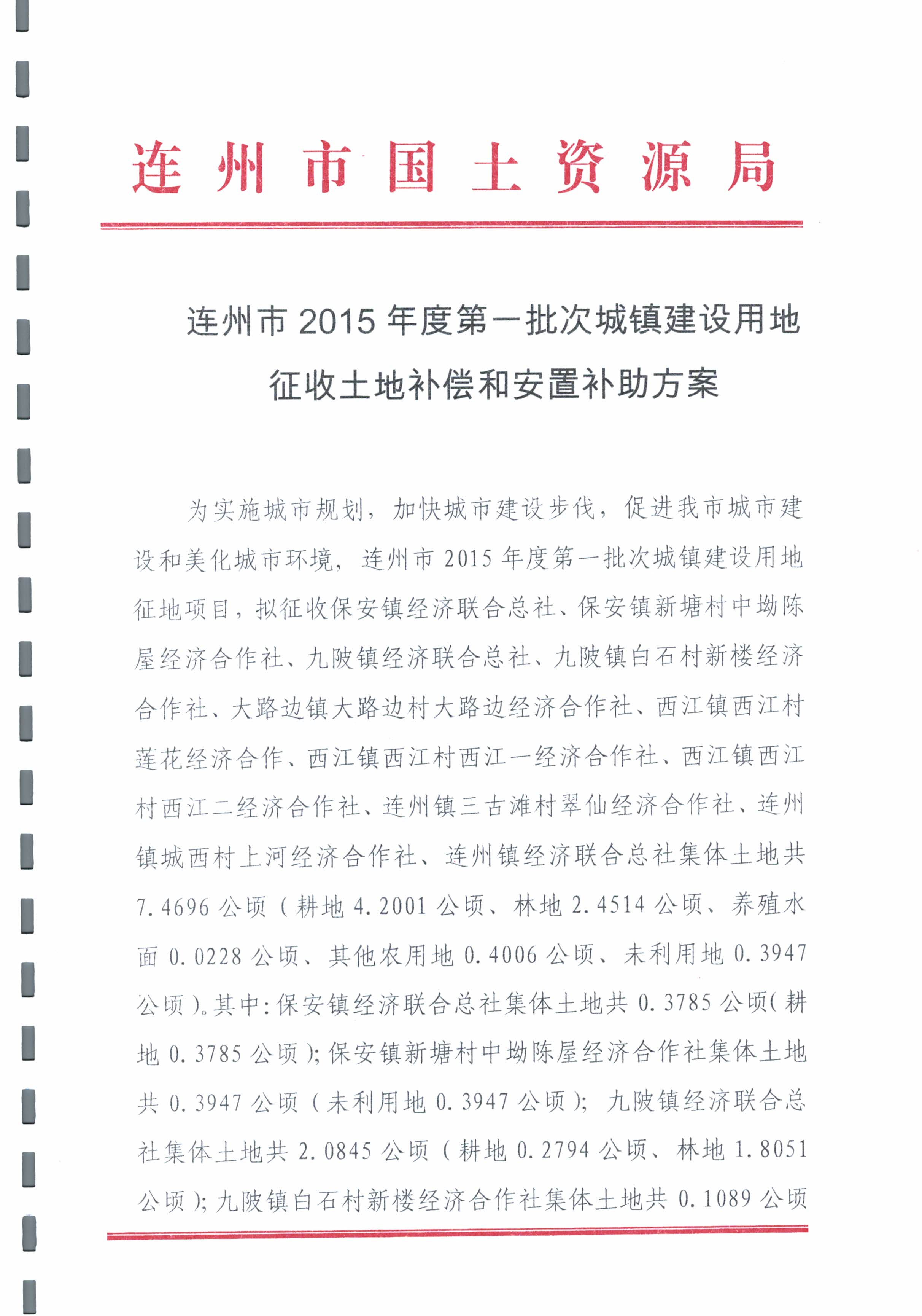 連州市2015年度第一批次城鎮(zhèn)建設(shè)用地的安置補償方案公告