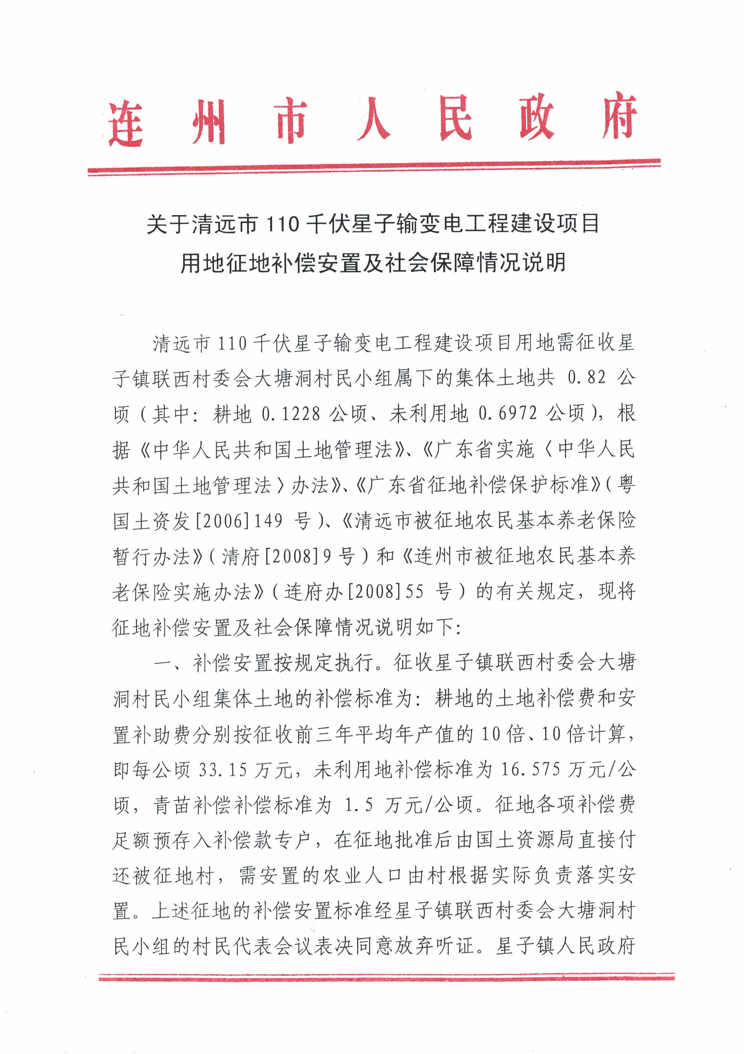 清遠市110千伏星子輸變電工程項目建設(shè)用地補償安置方案公告