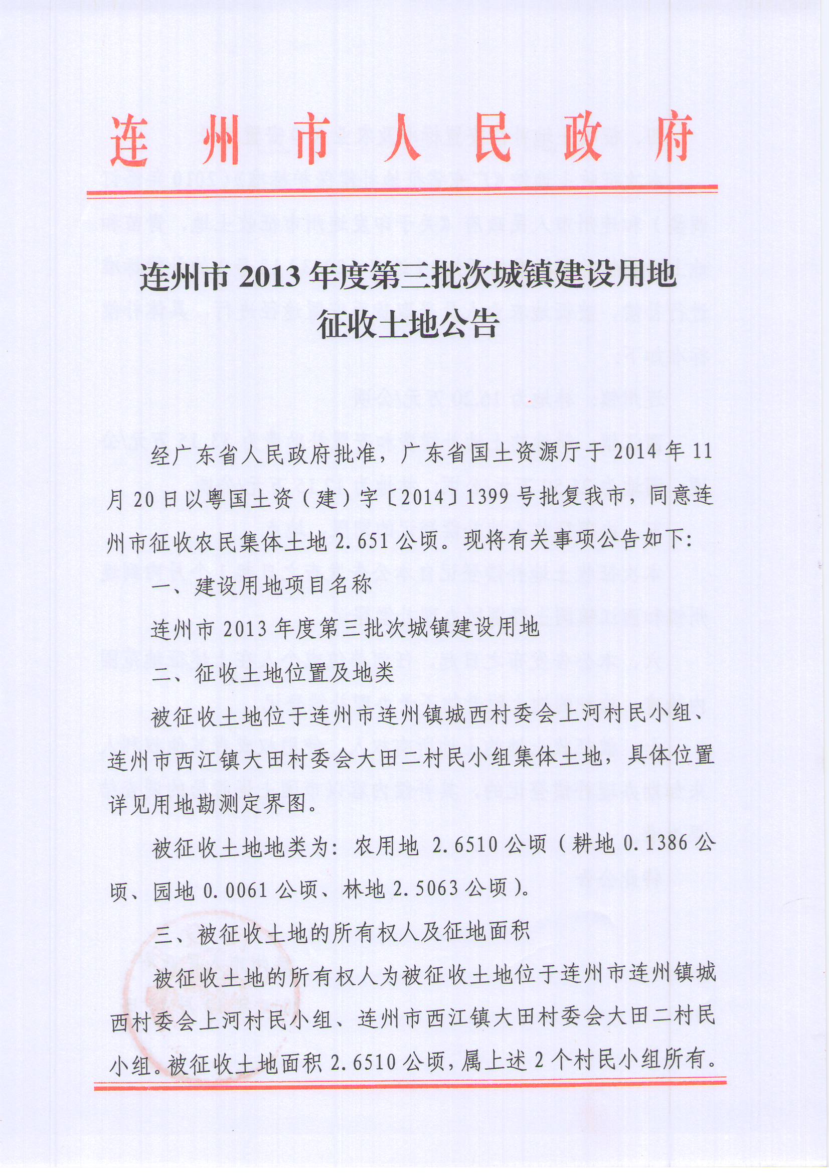 連州市2013年度第三批次城鎮(zhèn)建設(shè)用地征地公告信息