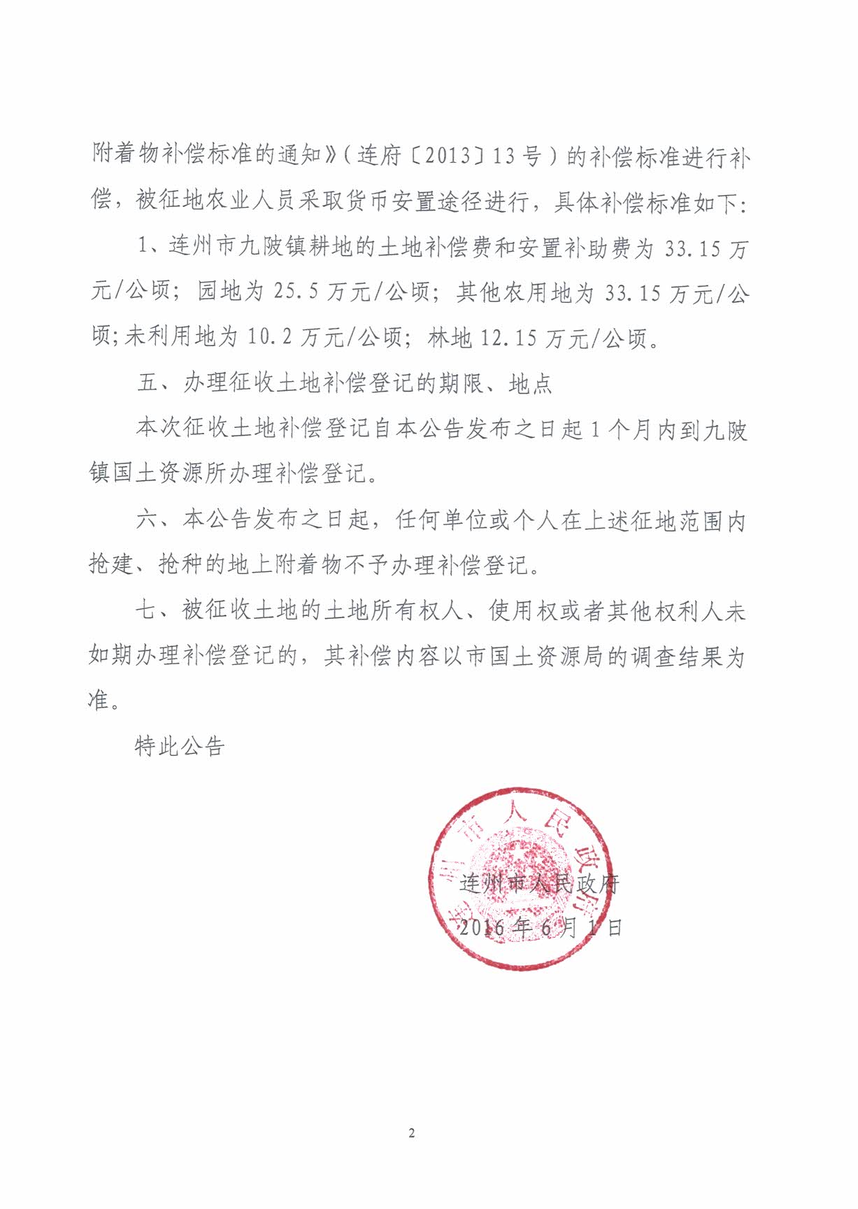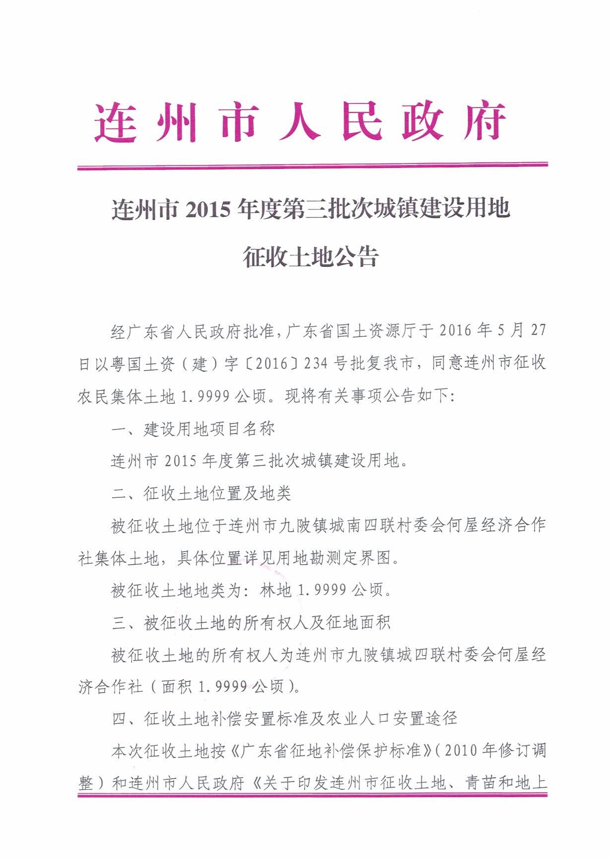連州市2015年度第三批次城鎮(zhèn)建設(shè)用地征收土地公告