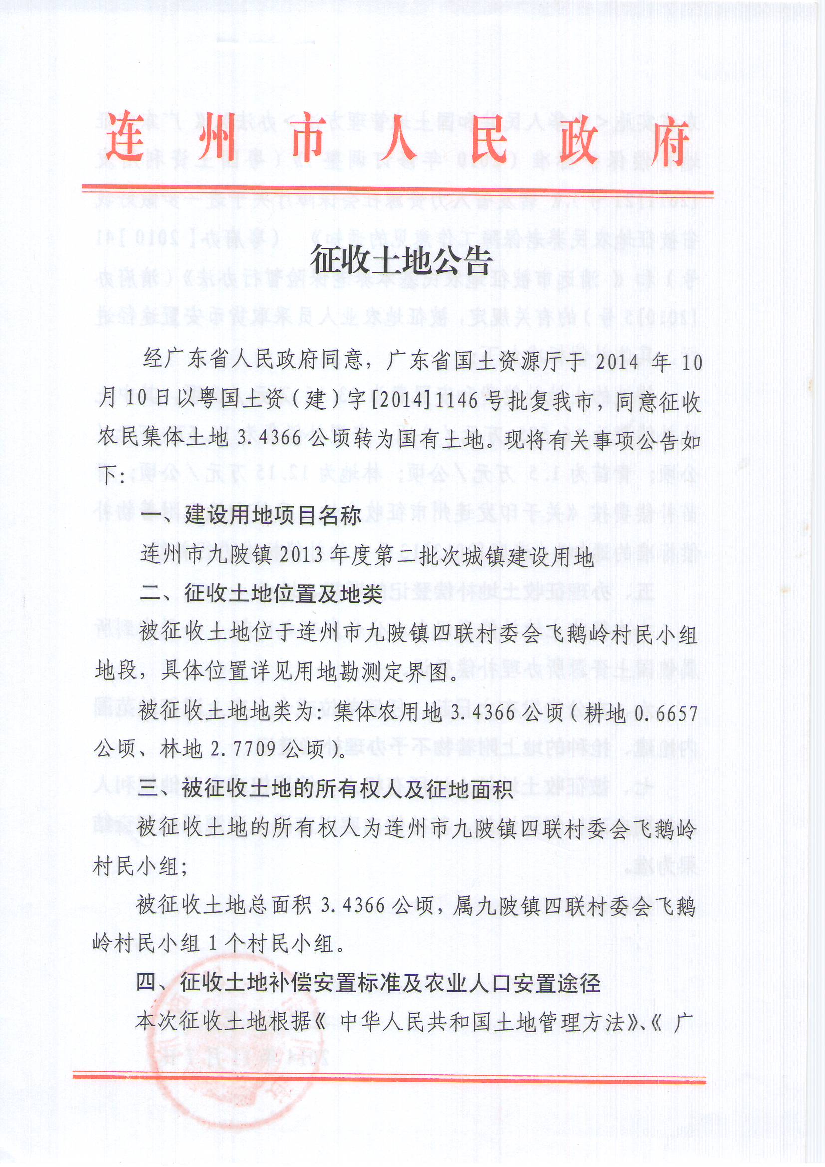 連州市九陂鎮(zhèn)2013年度第二批次城鎮(zhèn)建設(shè)用地征收土地公告