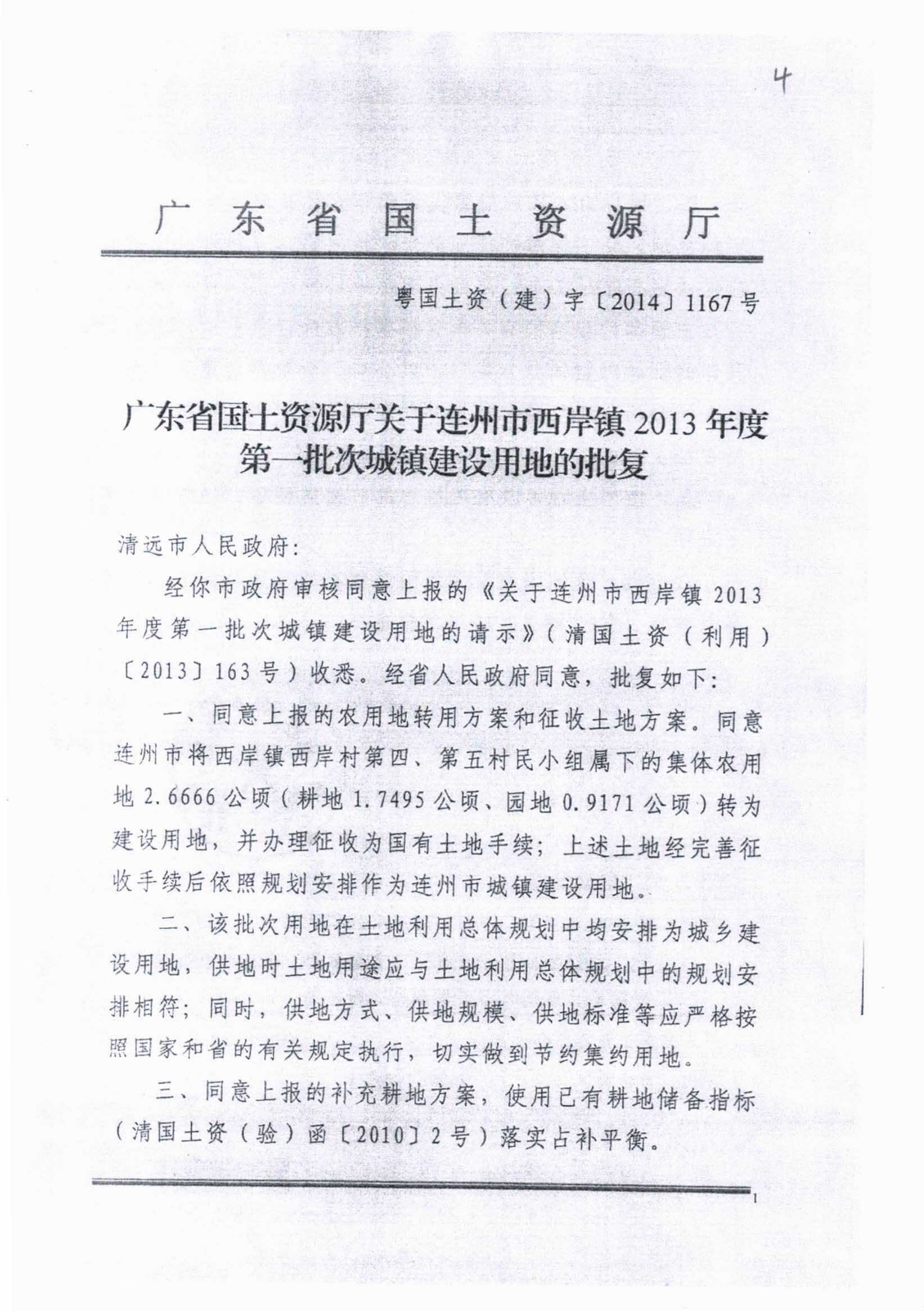 連州市西岸鎮(zhèn)2013年度第一批次城鎮(zhèn)建設(shè)用地征地批準信息