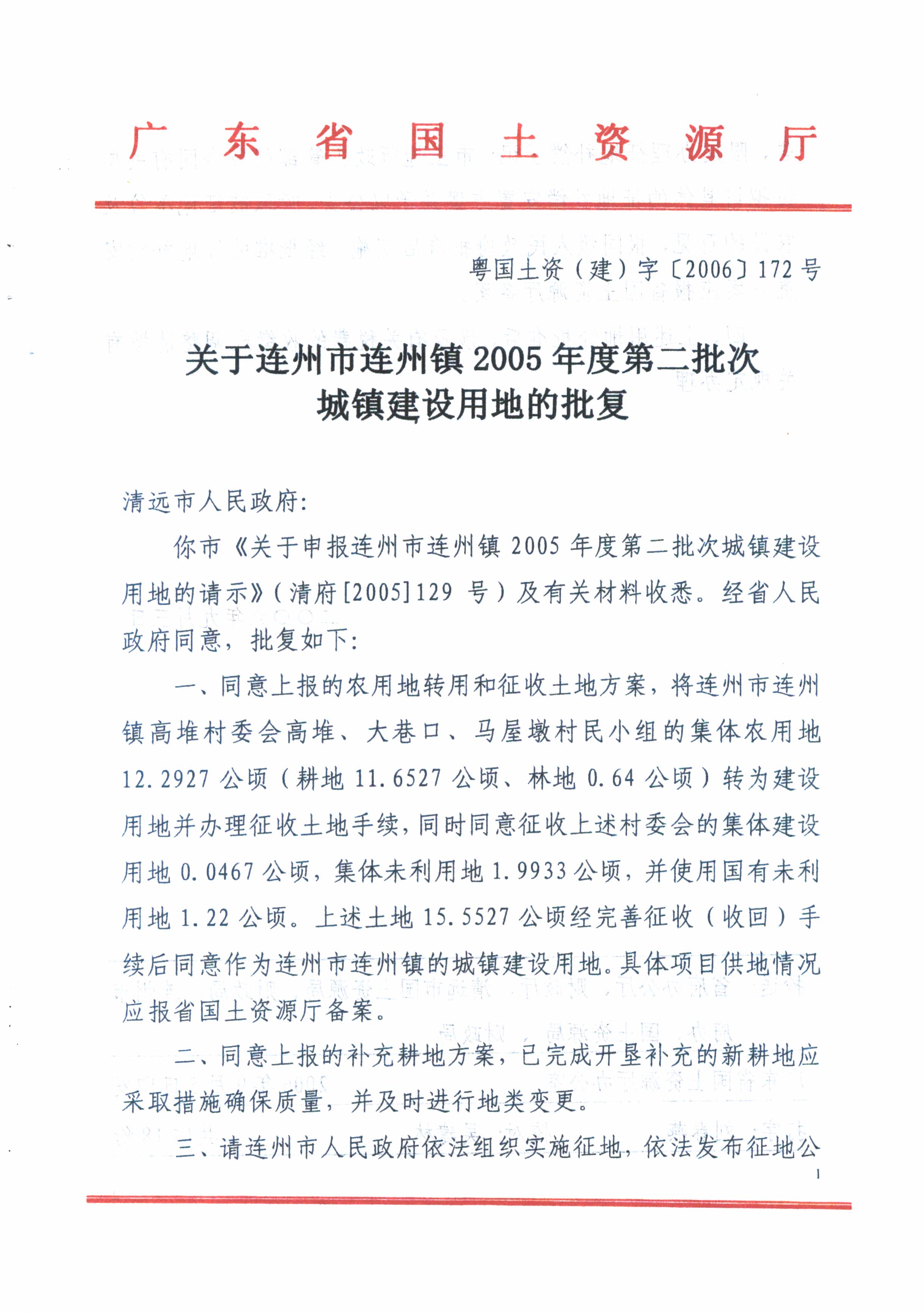 連州市連州鎮(zhèn)2005年度第二批次城鎮(zhèn)建設(shè)用地的批復(fù)