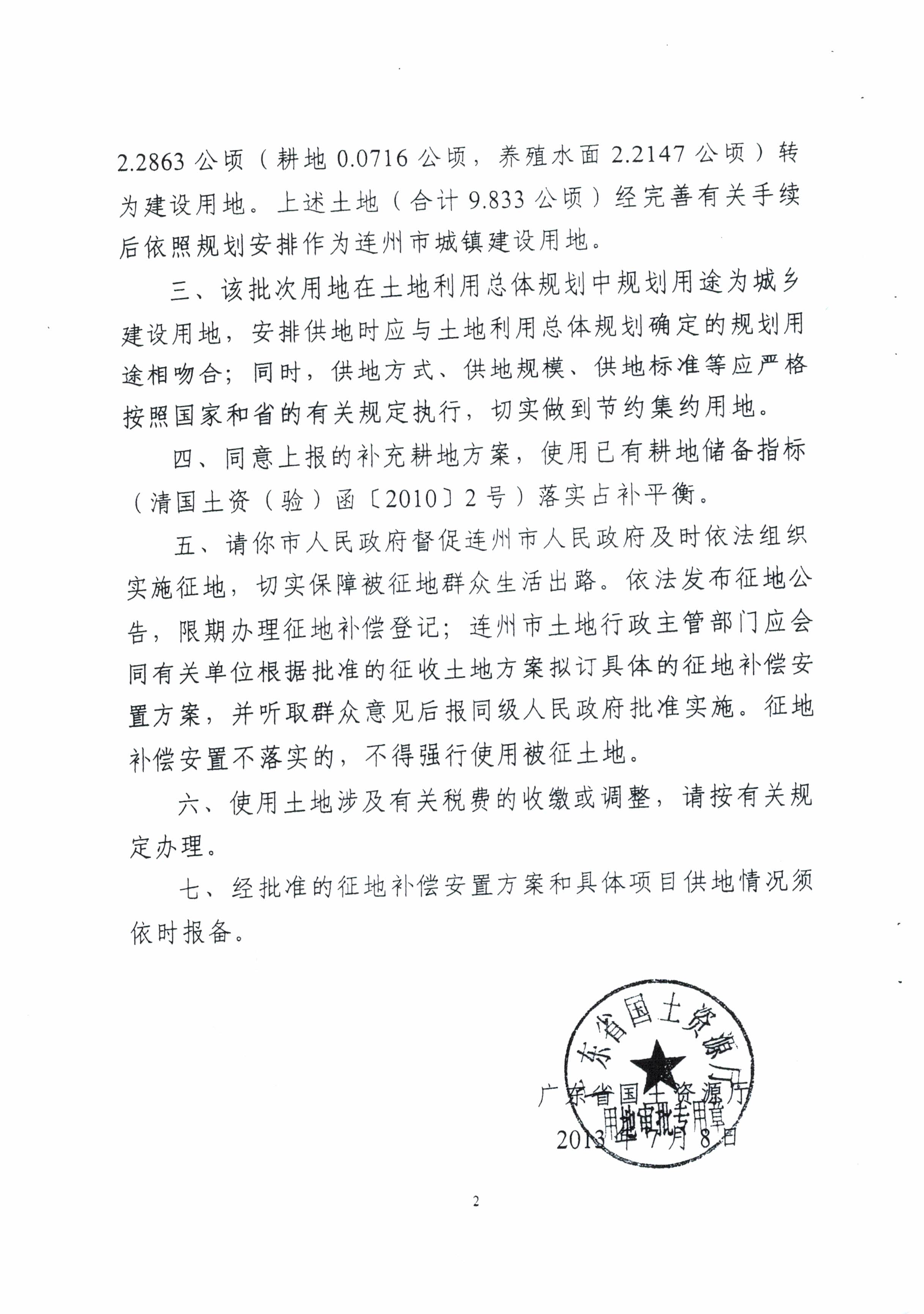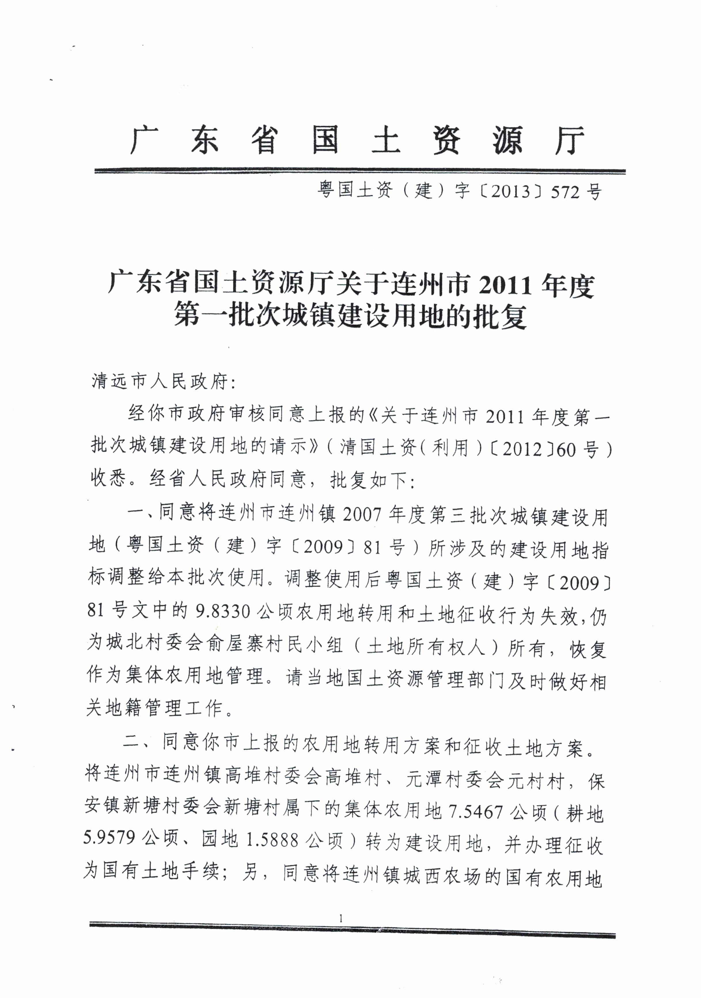 連州市2011年度第一批次城鎮(zhèn)建設(shè)用地的批復(fù)