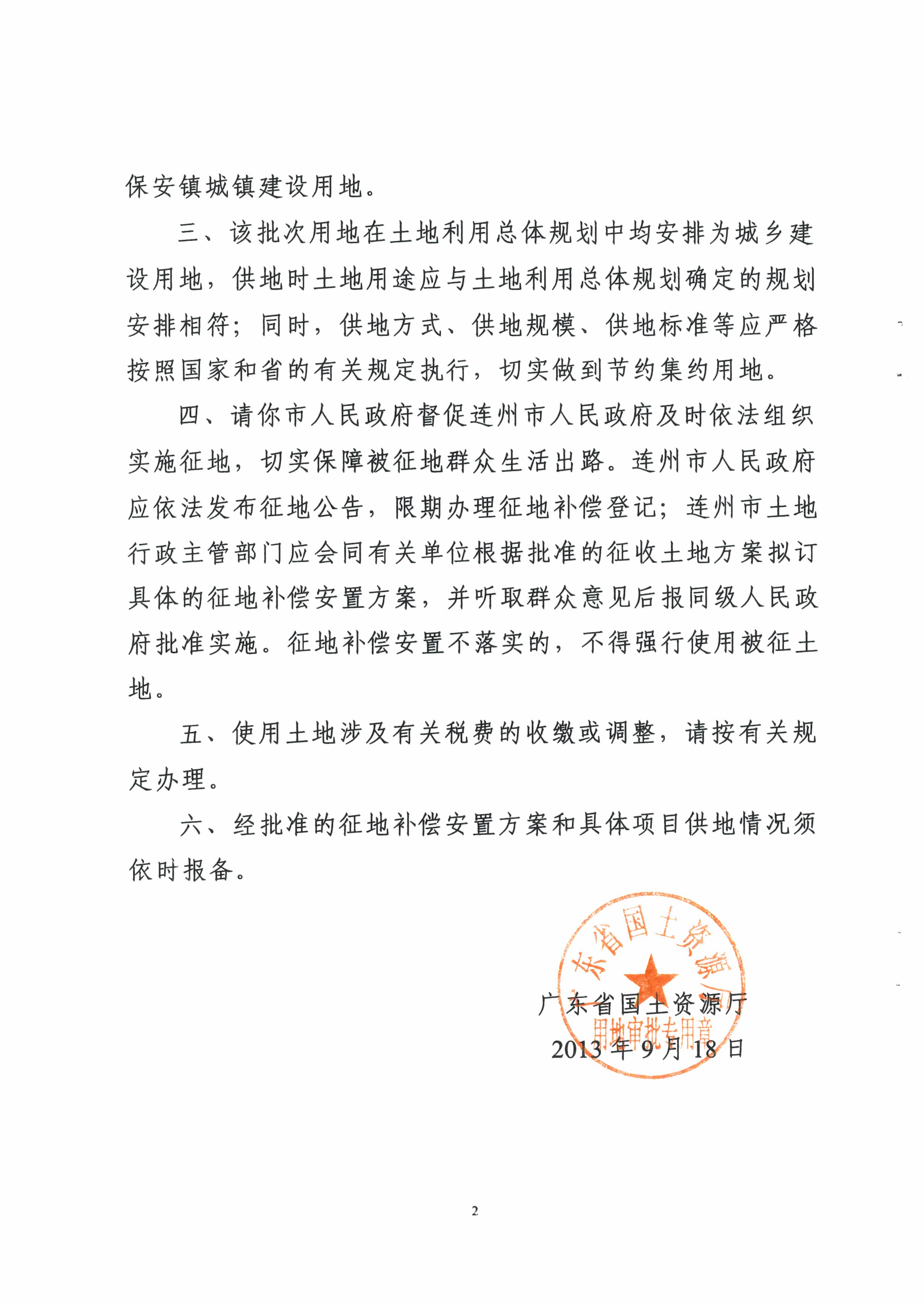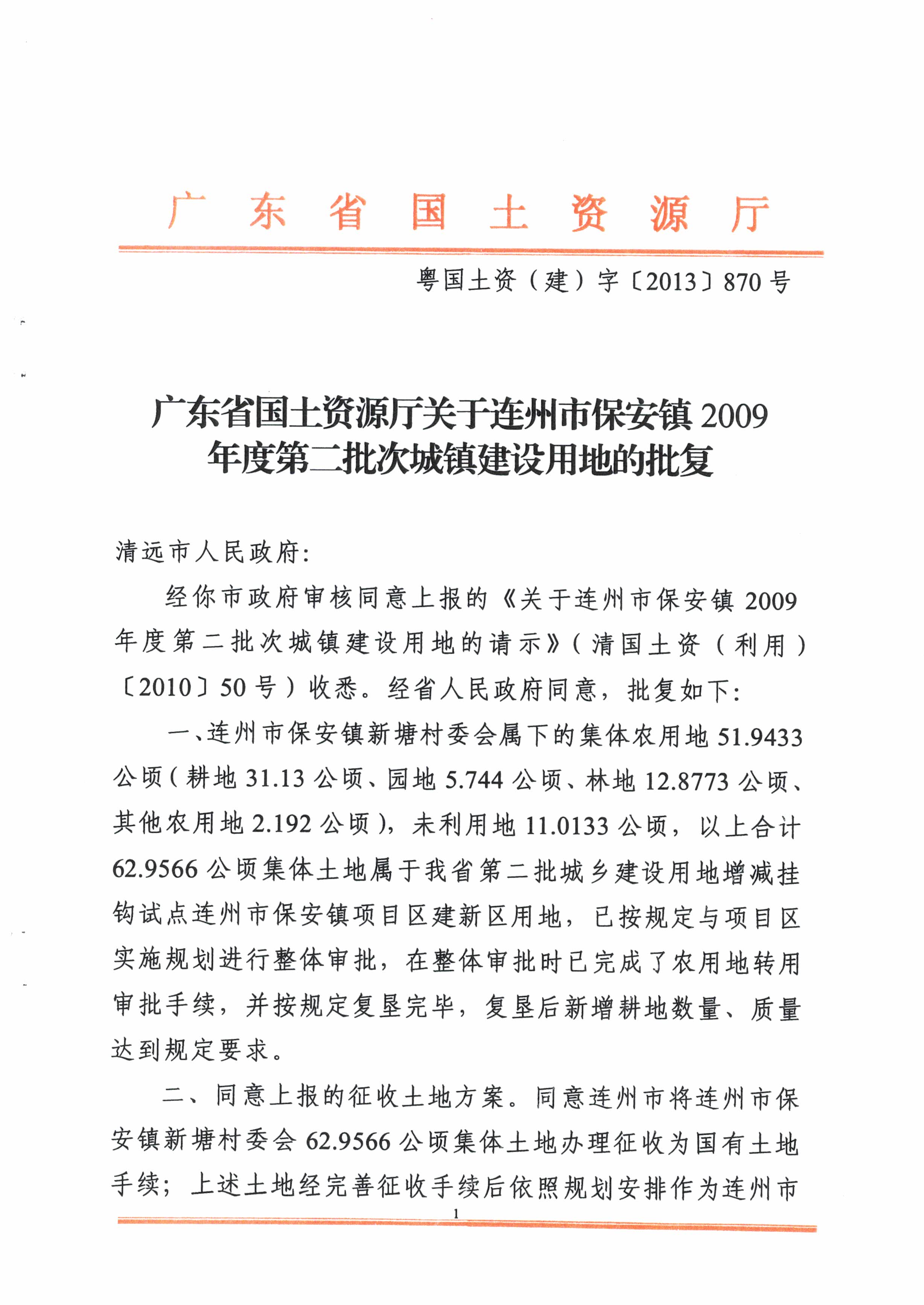 連州市保安鎮(zhèn)2009年度第二批次城鎮(zhèn)建設(shè)用地的批復(fù)