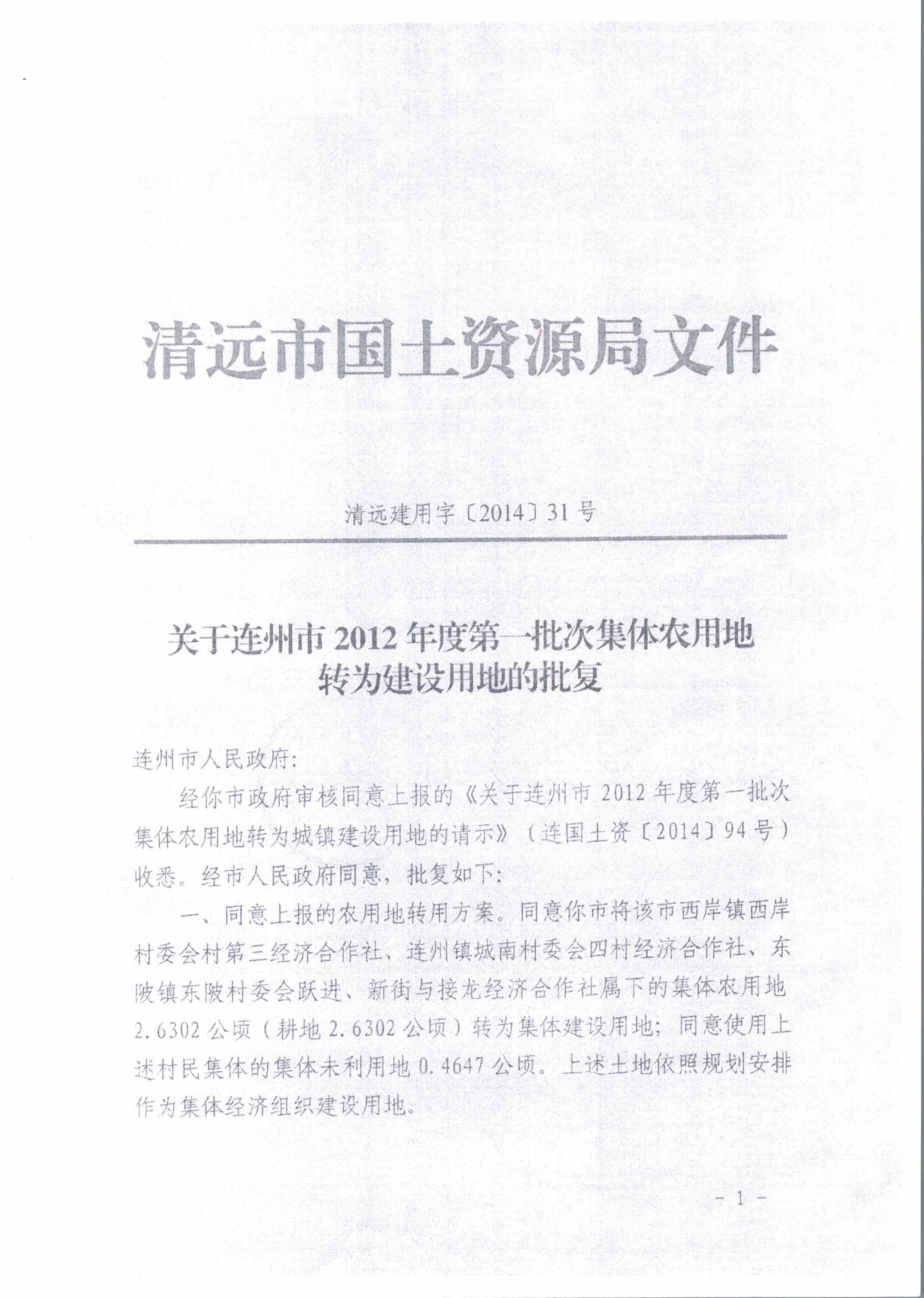 連州市2012年度第一批次農(nóng)用地轉(zhuǎn)為建設(shè)用地的批復(fù)