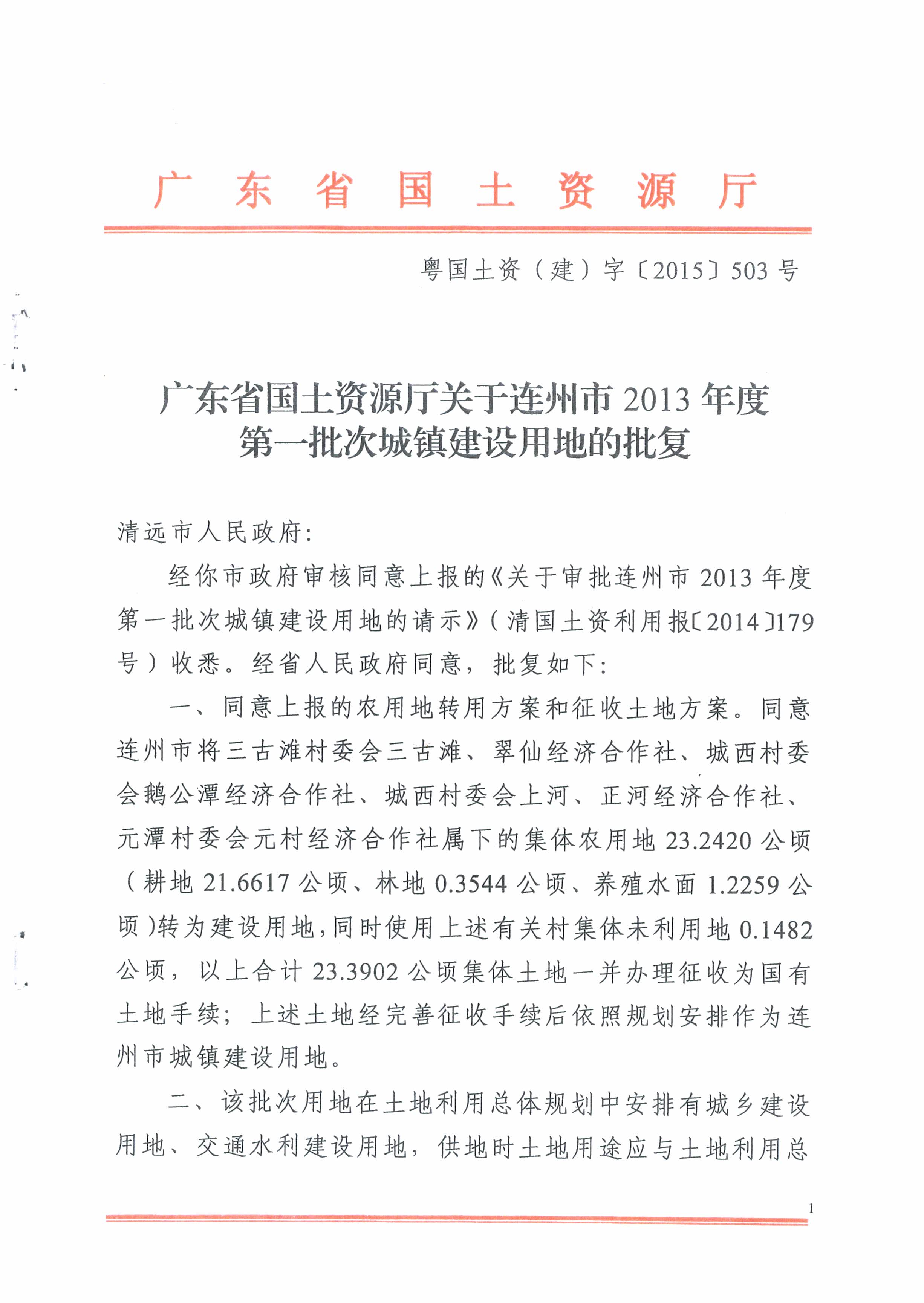 連州市2013年度第一批次城鎮(zhèn)建設(shè)用地的批復(fù)