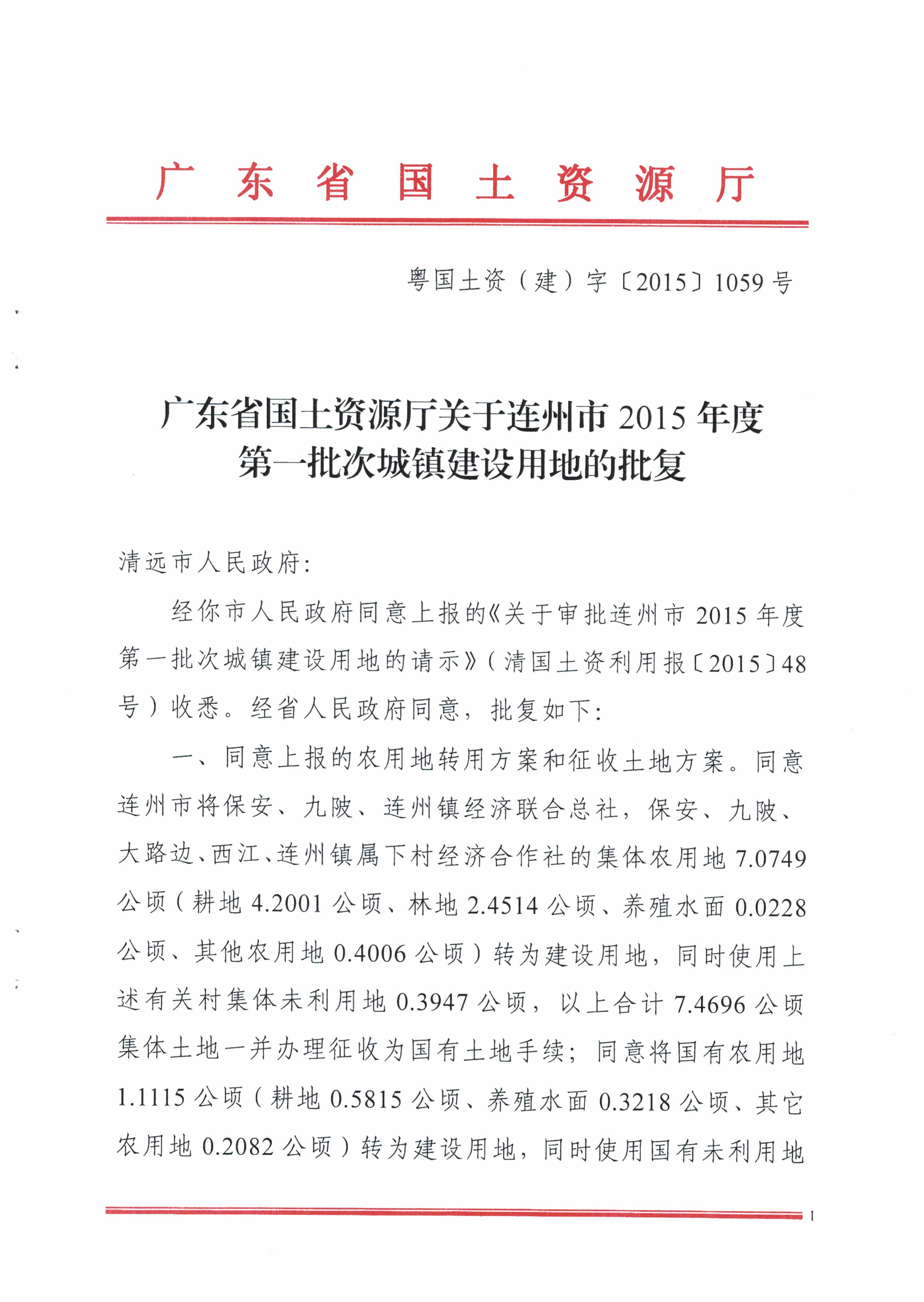 連州市2015年度第一批次城鎮(zhèn)建設(shè)用地的批復(fù)