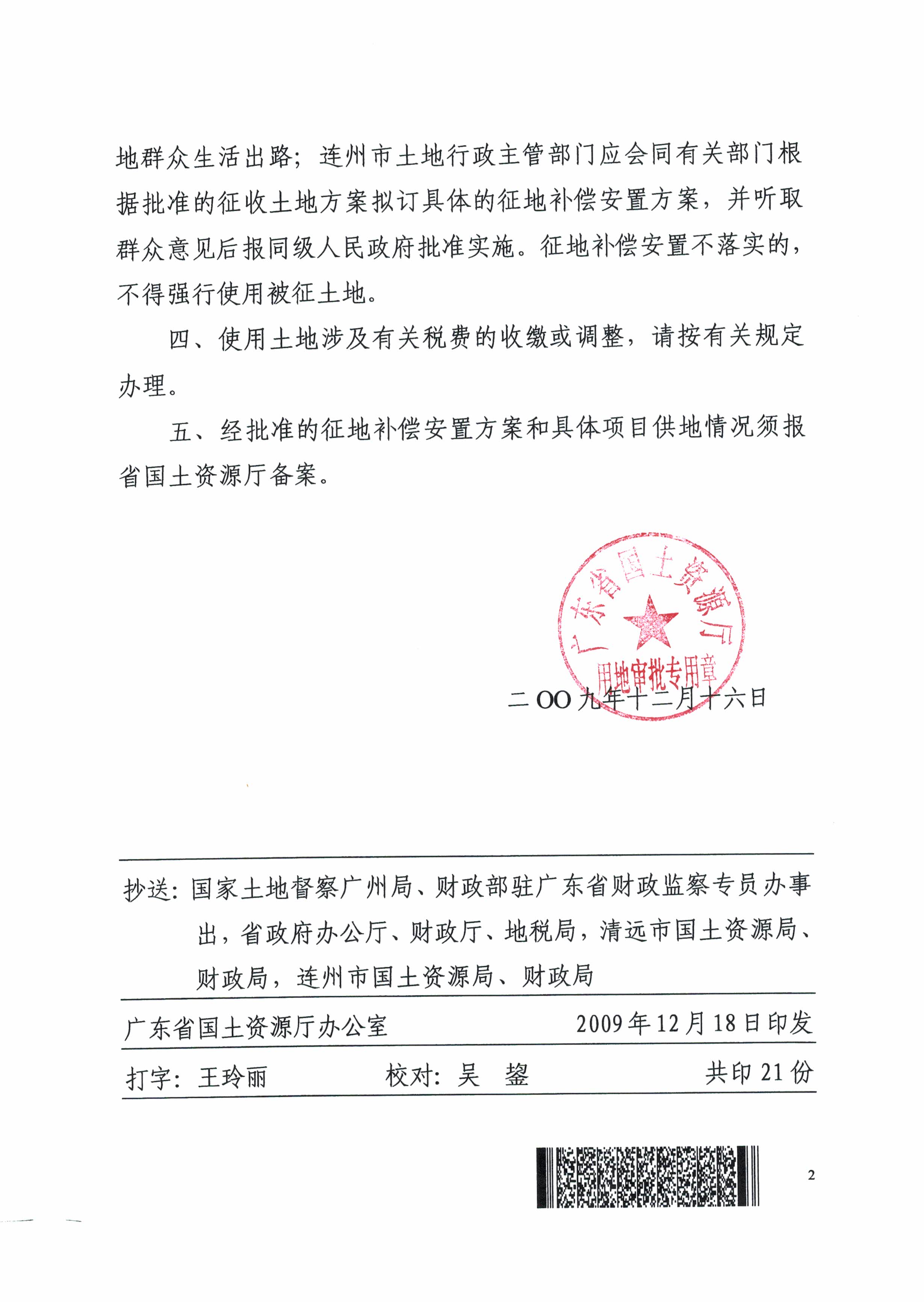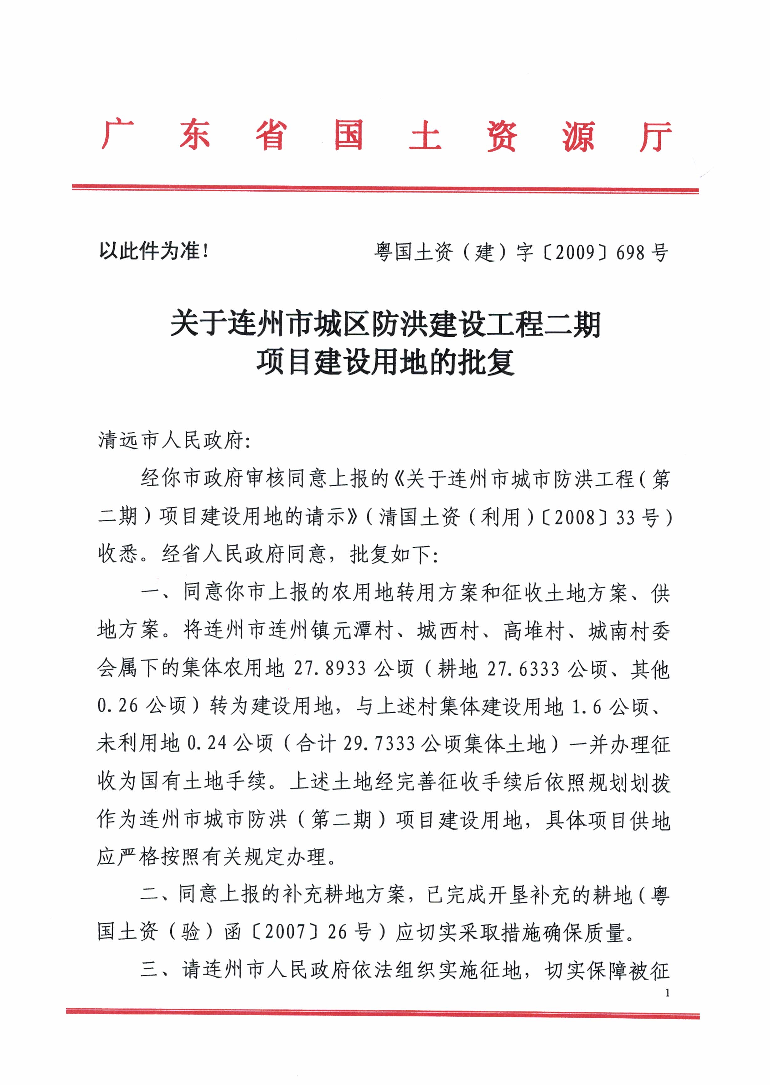連州市城區(qū)防洪建設(shè)工程二期項(xiàng)目建設(shè)用地的批復(fù)