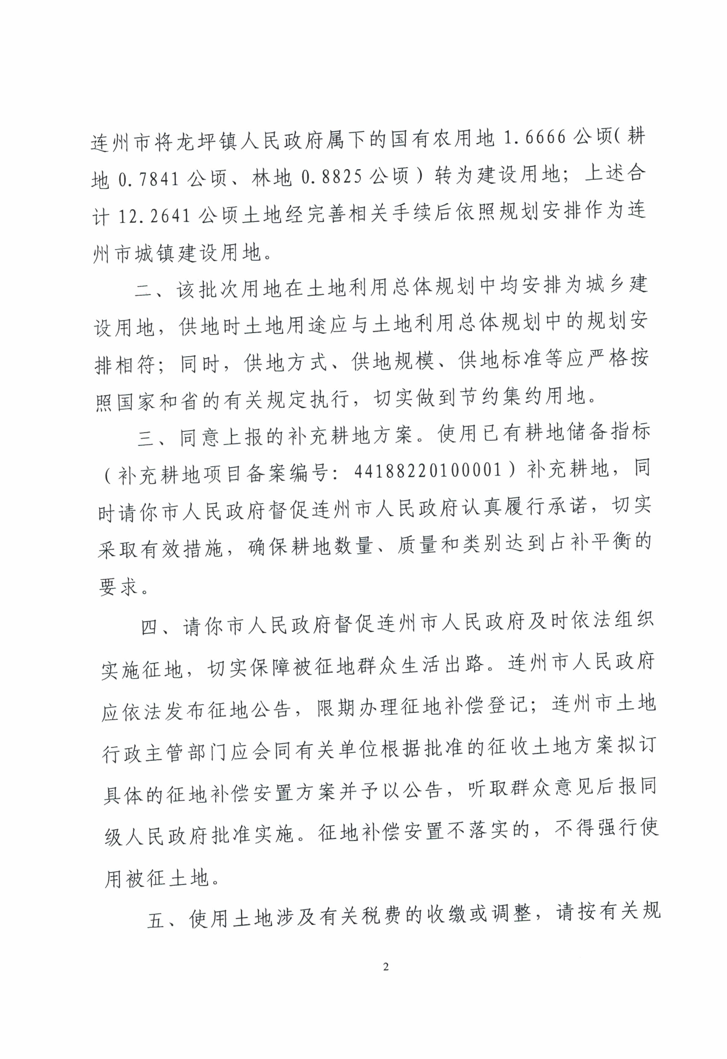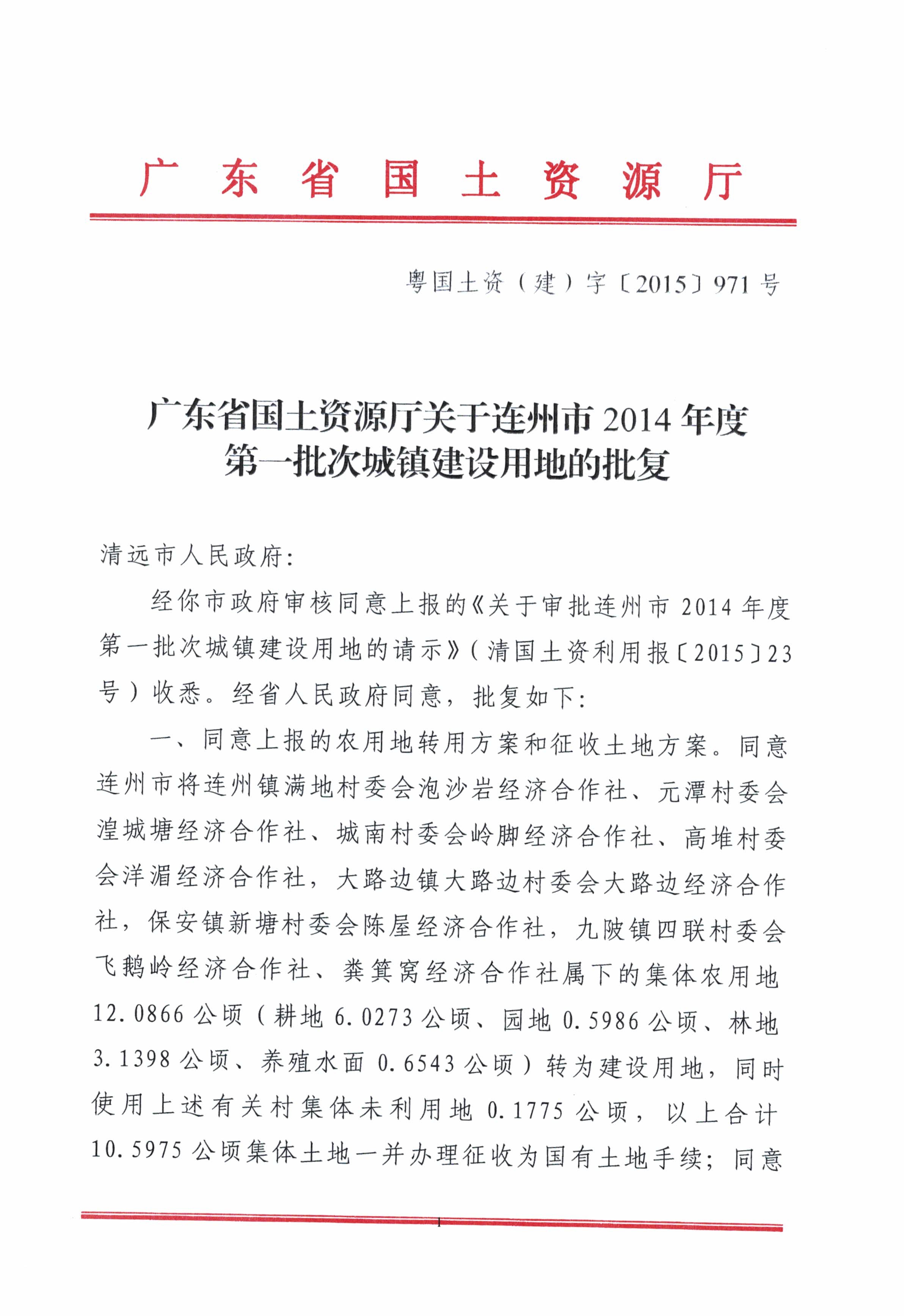 連州市2014年度第一批次城鎮(zhèn)建設(shè)用地的批復(fù)