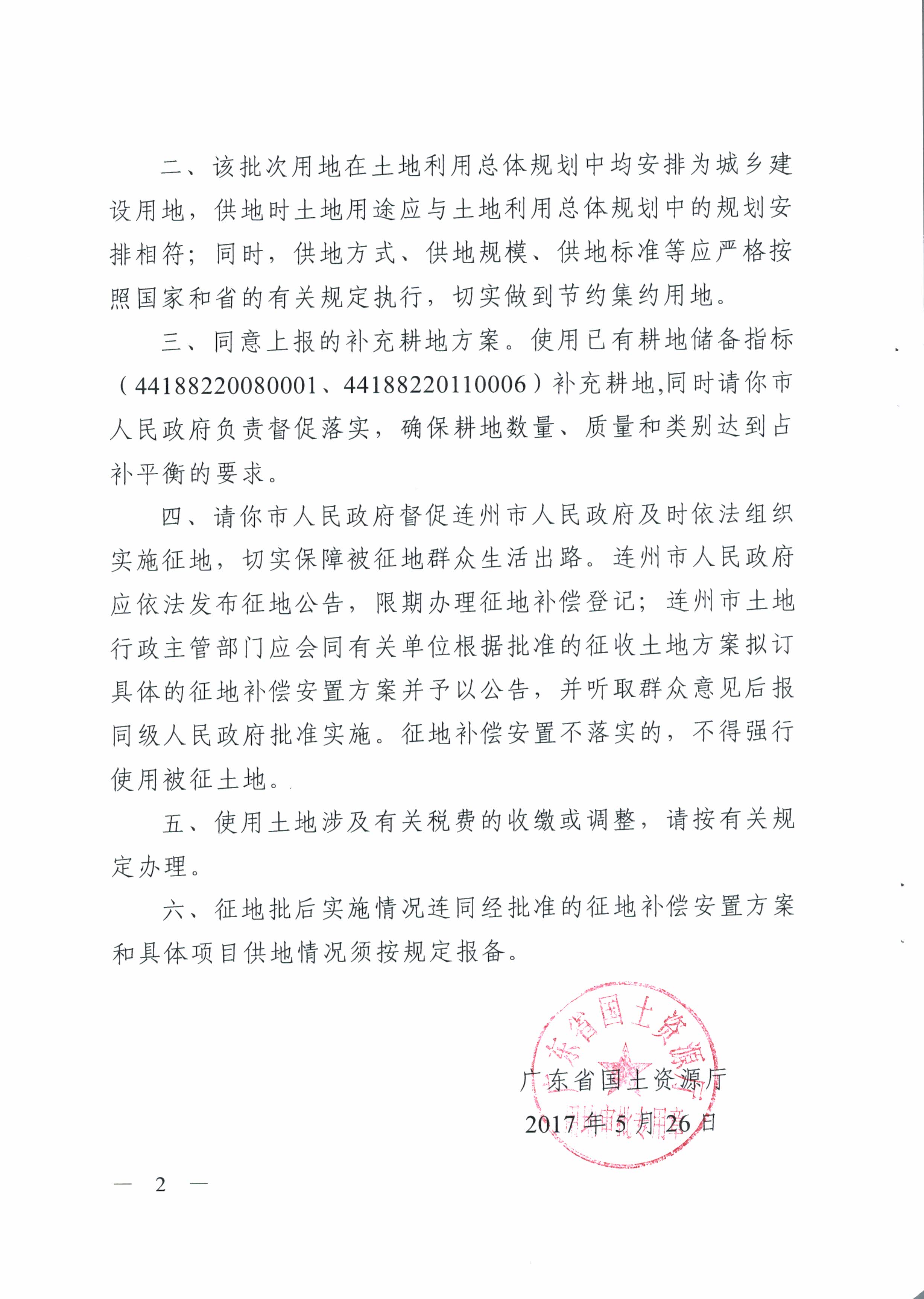 連州市2016年第四批次城鎮(zhèn)建設(shè)用地的批復(fù)