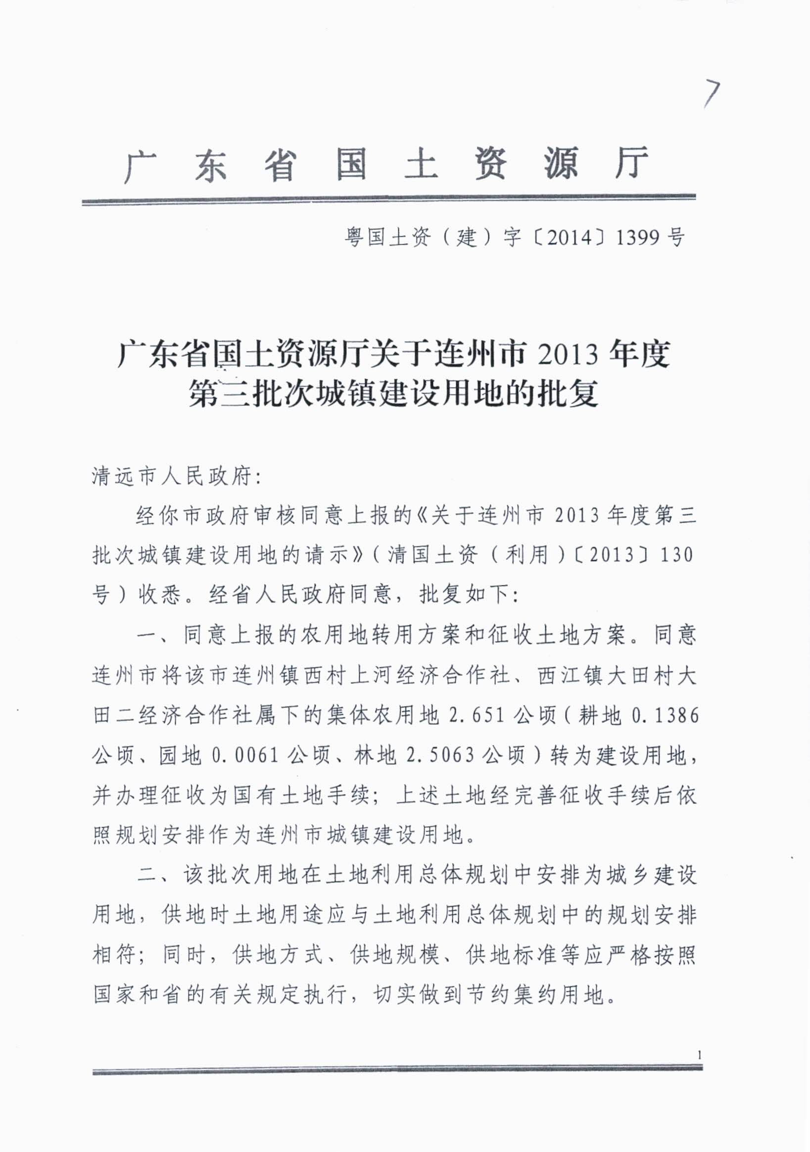 連州市2013年度第三批次城鎮(zhèn)建設(shè)用地的批復(fù)