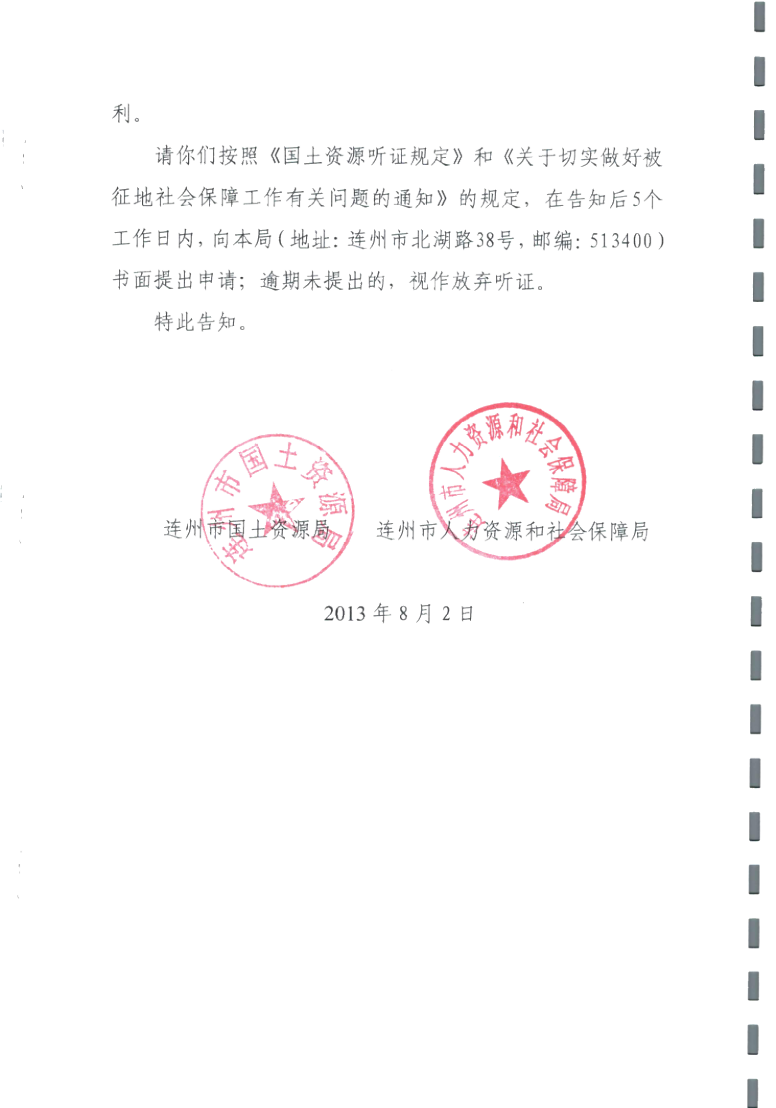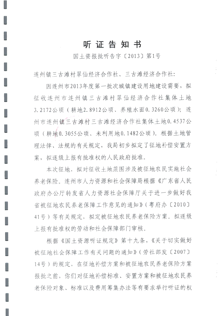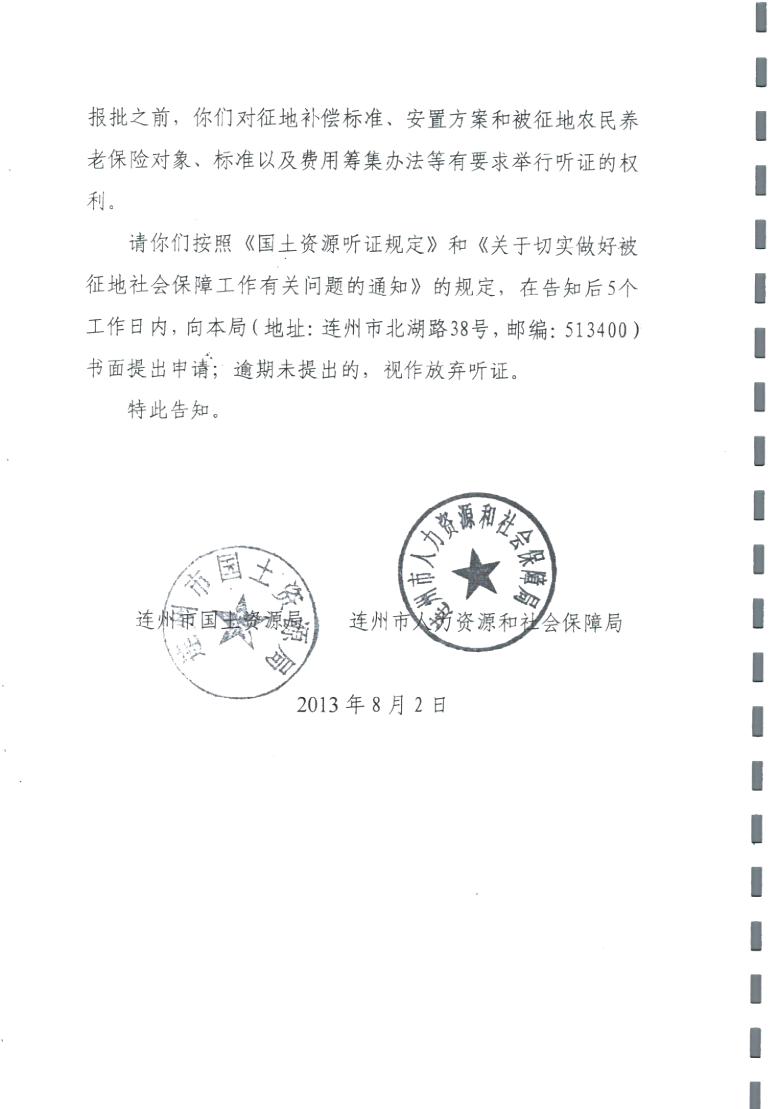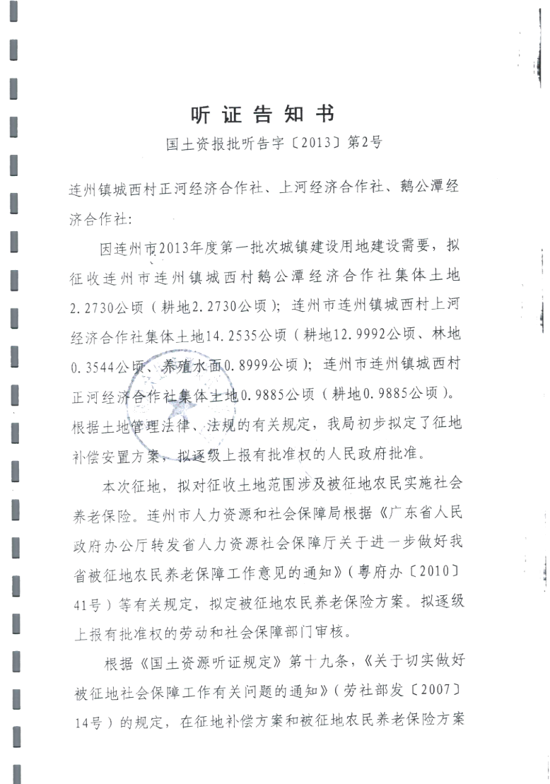 連州市2013年度第一批次城鎮(zhèn)建設(shè)用地聽證信息