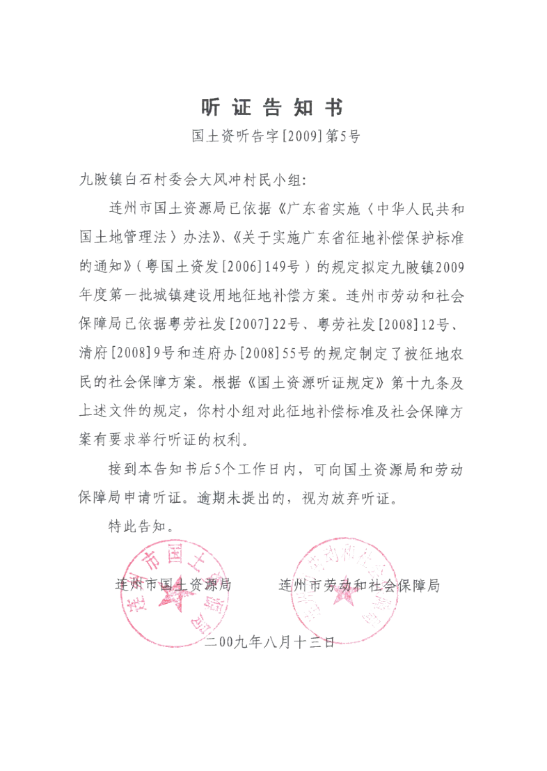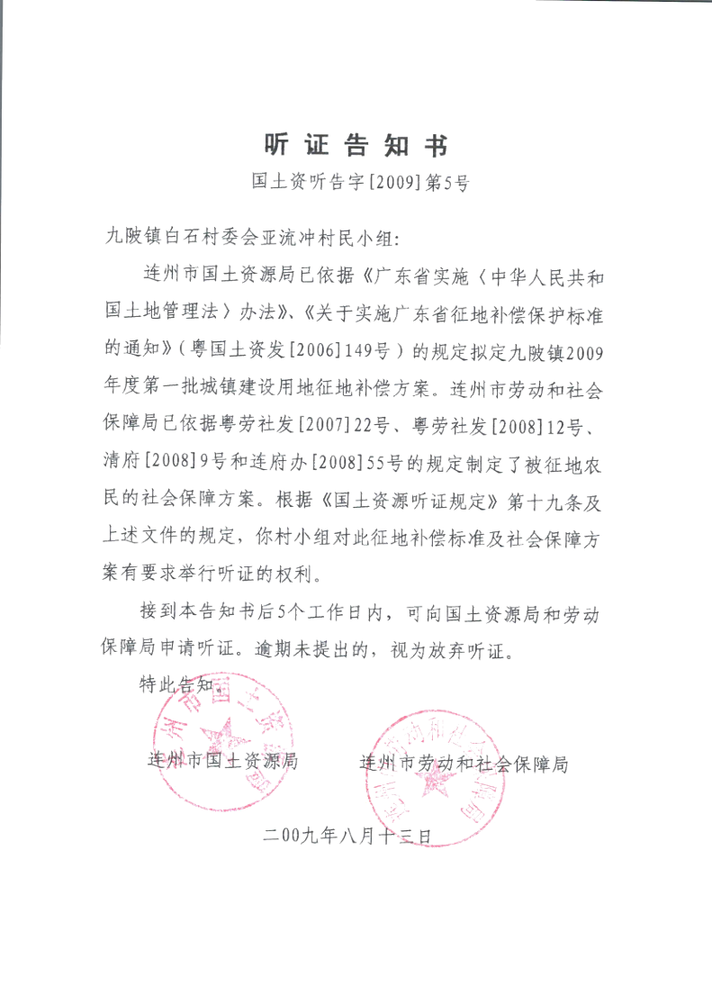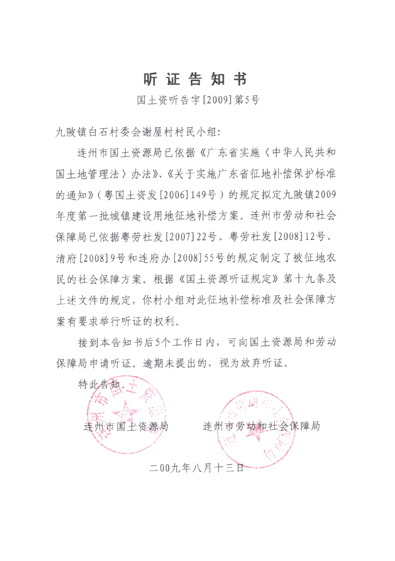 連州市九陂鎮(zhèn)2009年度第一批次城鎮(zhèn)建設(shè)用地聽(tīng)證信息