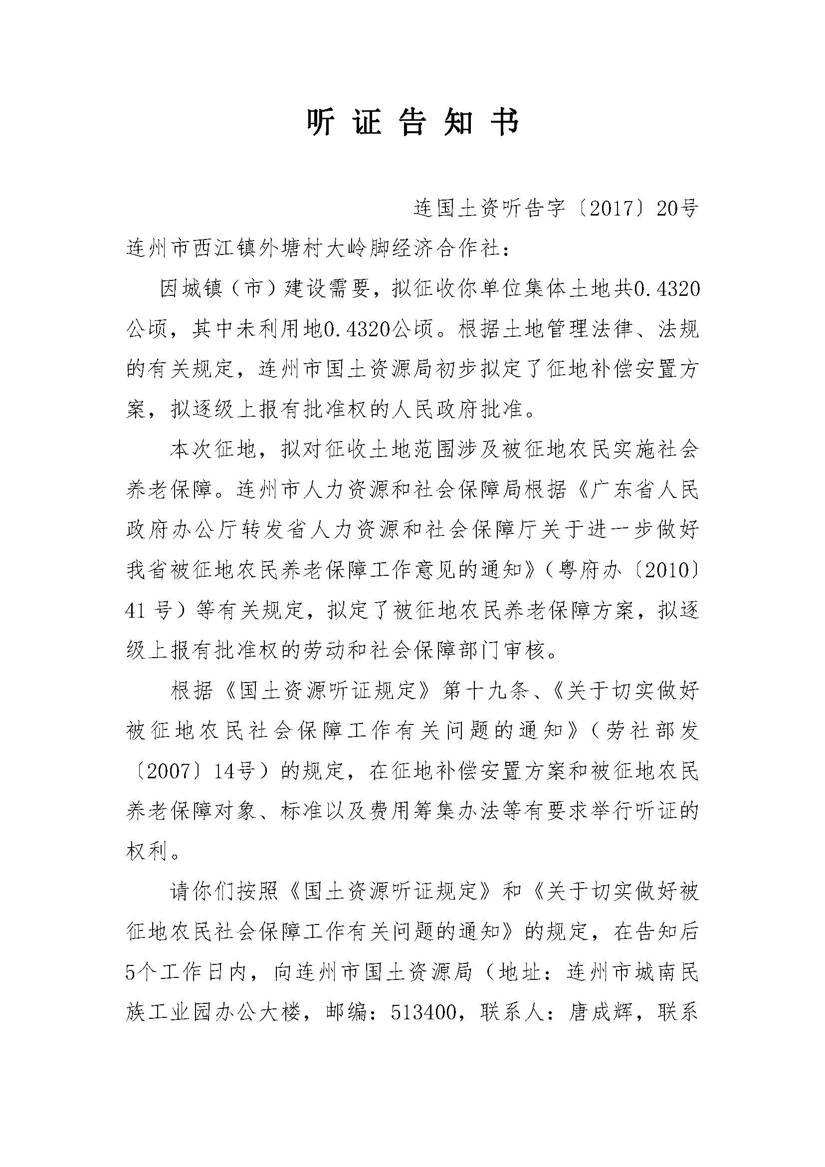 連州市2017年度第三批次城鎮(zhèn)建設(shè)用地聽證信息