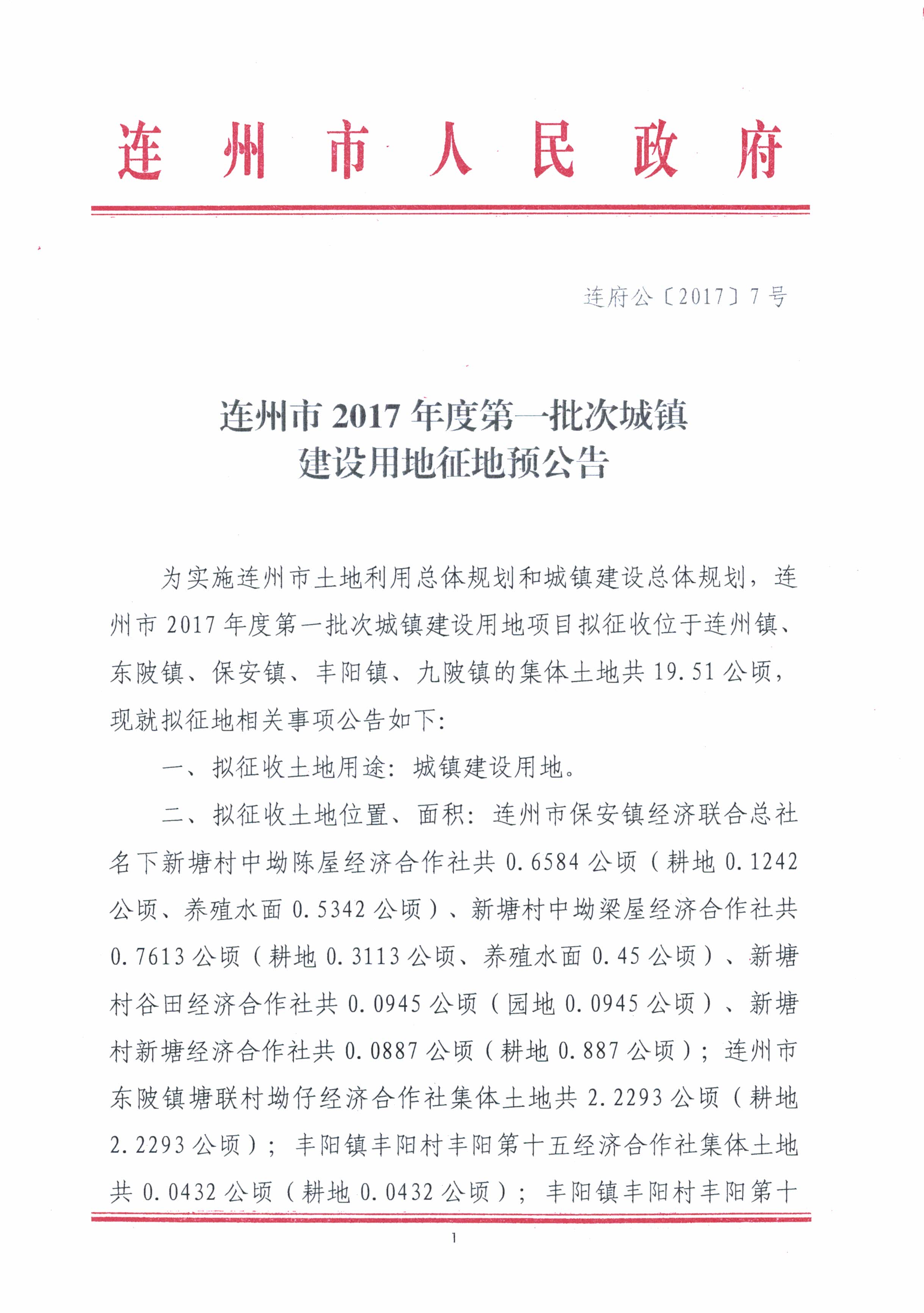 連州市2017年度第一批次城鎮(zhèn)建設(shè)用地征地預(yù)公告