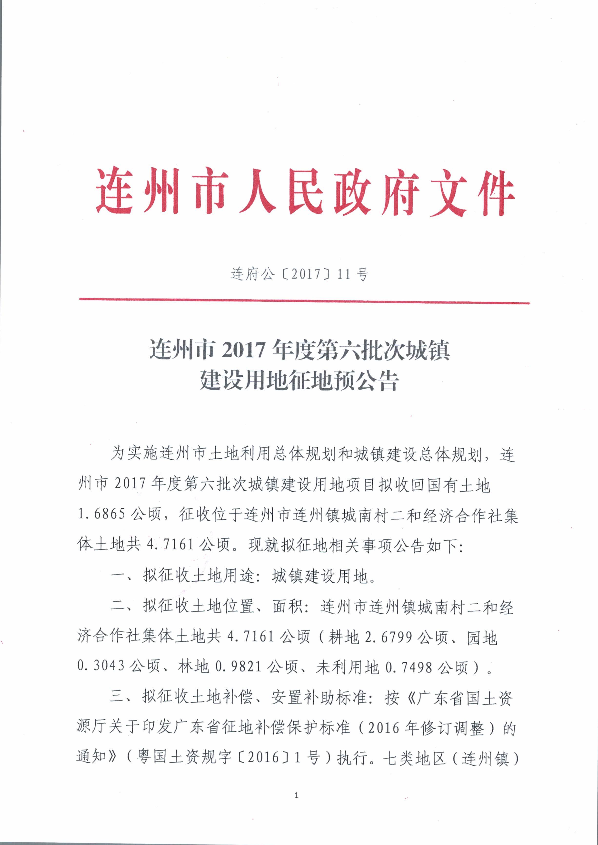 連州市2017第六批次城鎮(zhèn)建設(shè)用地征地預(yù)公告