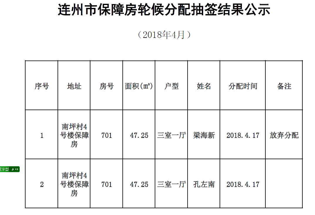 按照連州市公共租賃住房輪候順序,以下人員獲得公租房實物配租保障資格,