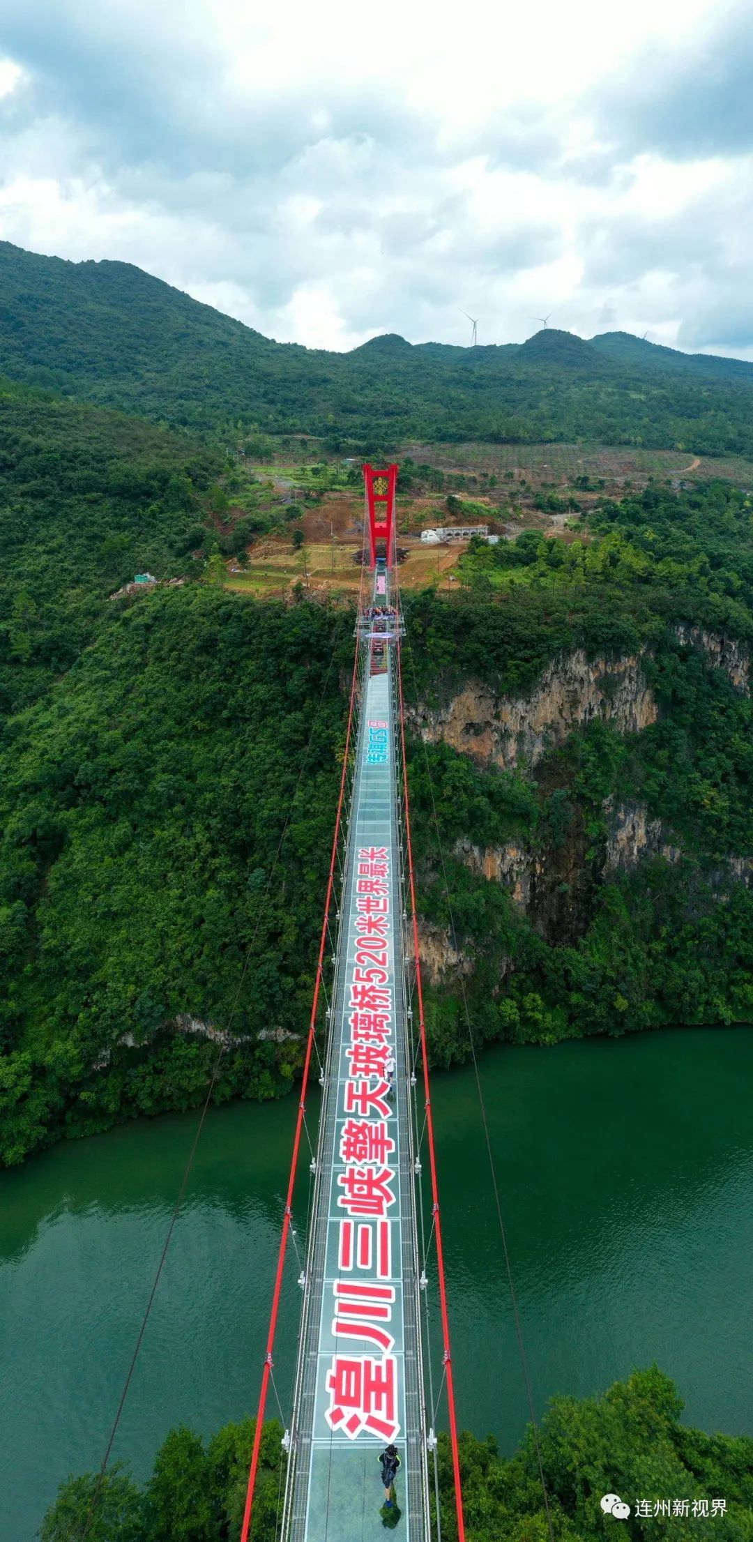 擎天玻璃橋坐落于湟川三峽——龍?zhí)抖燃賲^(qū),建在秦漢古道水路上,橫跨湟川三峽陡崖峭壁,盡覽粵北最大瀑布群,憑借別出心裁的結(jié)構(gòu)和超凡脫俗的外觀,已成為連州市高速創(chuàng)造“歷史文化之旅、自然景觀之旅、國(guó)際通道之旅”的標(biāo)志性建筑,是連州旅游的新名片。