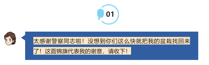 當(dāng)被問(wèn)及盜竊動(dòng)機(jī)時(shí),嫌疑人稱(chēng)其是盆栽愛(ài)好者,8月2日凌晨,其路過(guò)潘女士店鋪門(mén)口時(shí),看到盆栽擺在外面,以為這是沒(méi)人要的東西,一時(shí)起了貪小便宜的念頭,便“順手牽羊”將其搬走了。弄清楚事情的來(lái)龍去脈后,處警民輔警很快就將丟失的盆栽完好無(wú)損地找回,并在當(dāng)天19時(shí)歸還給了事主潘女士。